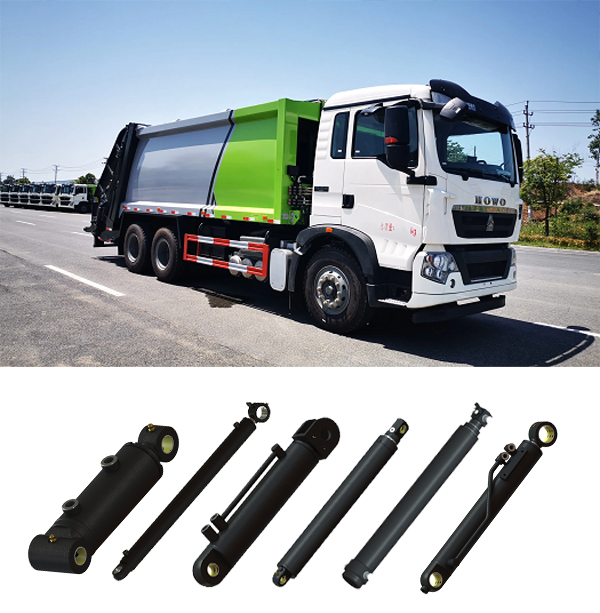 壓縮式垃圾車的油缸包括:自動鎖油缸,傾倒機(jī)構(gòu)油缸,填料器舉升油缸,刮板油缸,滑板油缸,推板油缸。